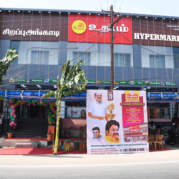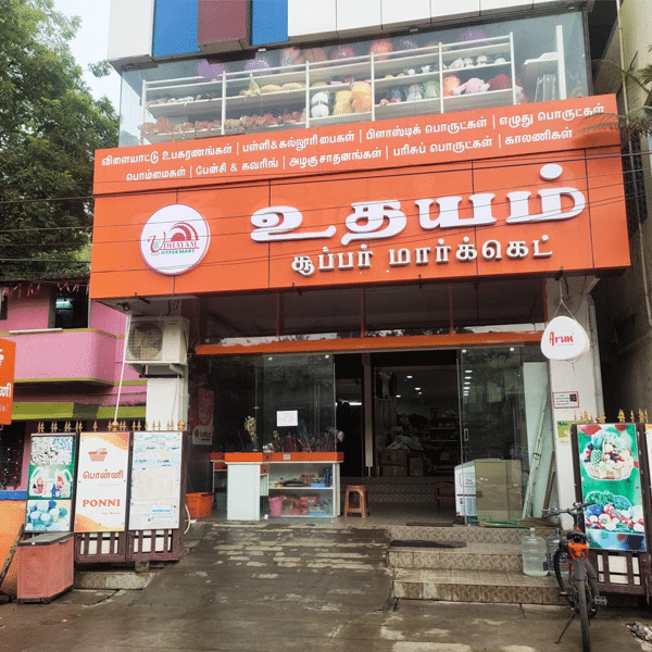 Established in 2010 by Mr. K. Kumarappan, Udhayam Supermarket has grown into a trusted shopping hub for the community. Today, under the successful management of Mr. K. Vairavan, we continue to serve our customers with dedication and care.